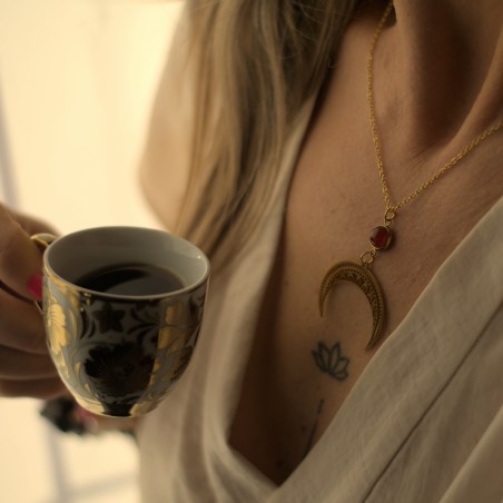 Lunula (Półksiężyc) to prastary symbol kobiecej energii, intuicji oraz nieustannego rozwoju. Jako talizman ma wzmacniać poczucie własnej wartości i celebrować każdy etap kobiecego życia. W połączeniu z "ognistym" agatem, Lunula staje się symbolem kobiety odważnej, pełnej pasji i świadomej swojej wewnętrznej mocy.