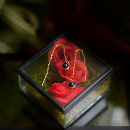 Kolczyki sztyfty na łańcuszku z kamieniem Noc Kairu.