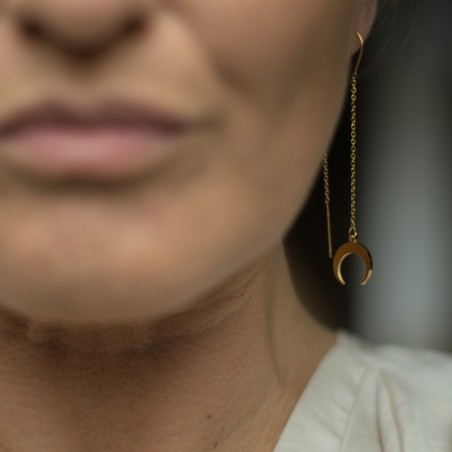 Bardzo oryginalne bigle, które za pomocą łańcuszka przeciąga się przez płatek ucha. Na końcu łańcuszka znajduje połyskująca lunula - symbol kobniecości, cykliczności i intuicji.