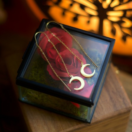 Bardzo oryginalne bigle, które za pomocą łańcuszka przeciąga się przez płatek ucha. Na końcu łańcuszka znajduje połyskujący księżyc.