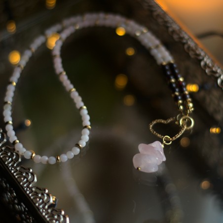 To jest naszyjnik, który symbolizuje czułość, wewnętrzny spokój oraz kobiecą siłę. Luksusowe rękodzieło stworzone w mojej pracowni z myślą o harmonii serca.