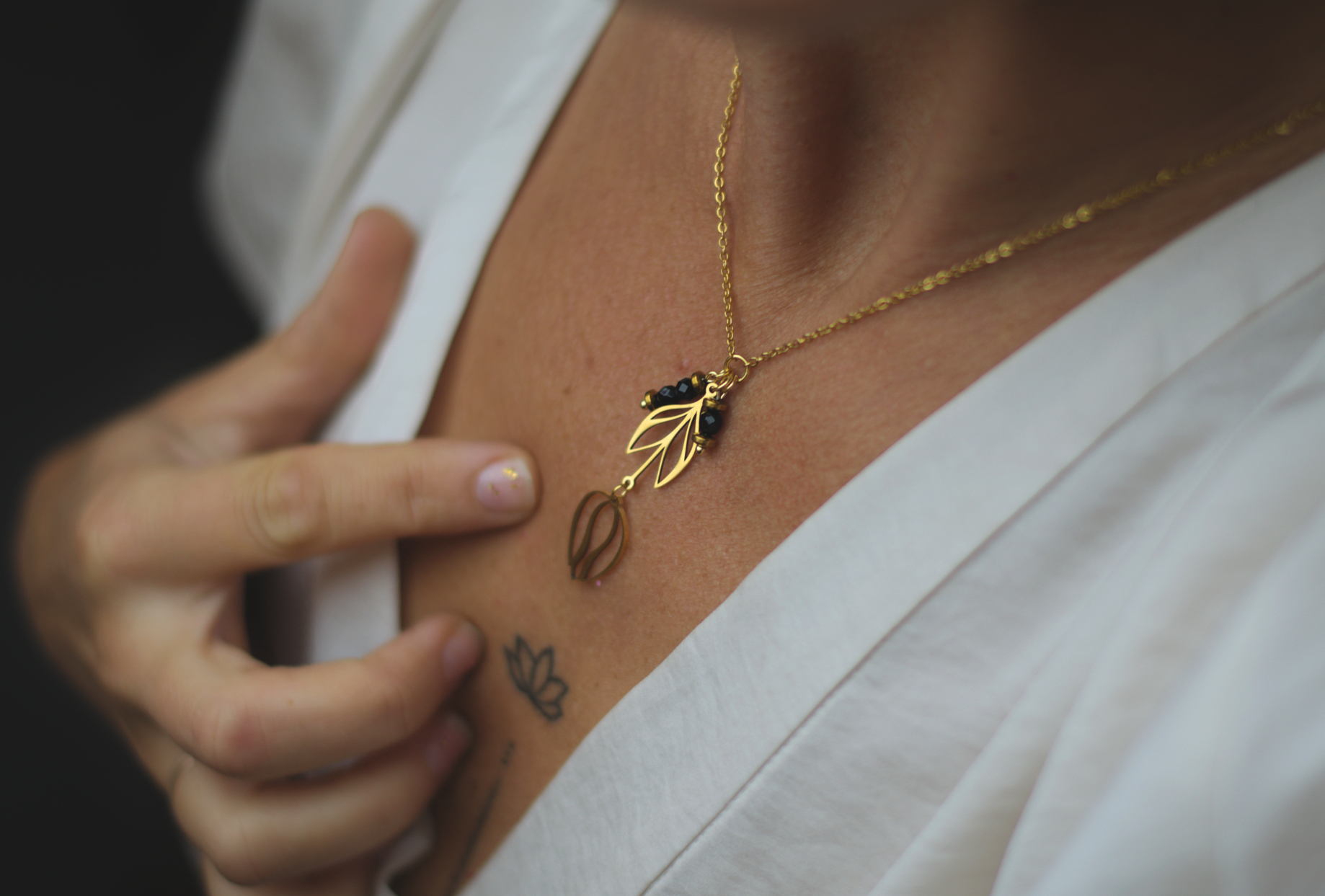 Naszyjnik z Tulipanem i Onyksami